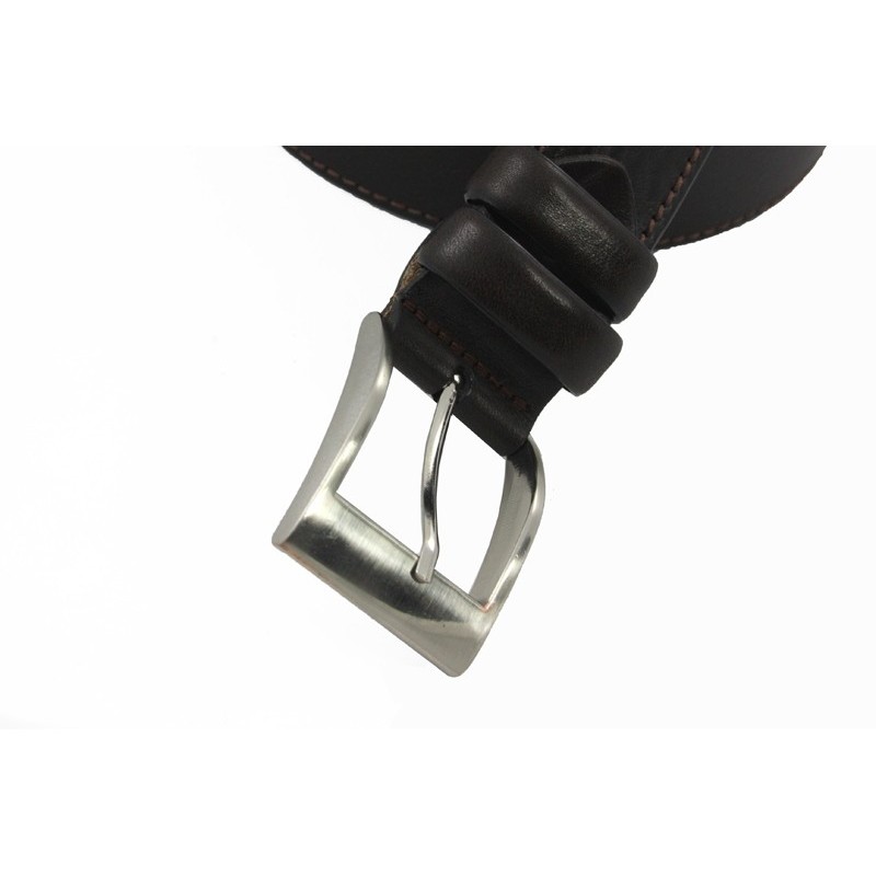 Brązowy pasek do dżinsów 135 cm marki Orsatti z klasyczną klamrą, przeszycie