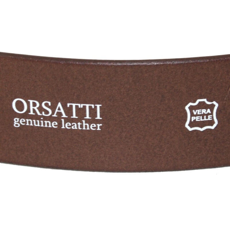 Brązowy pasek do spodni typu dżinsy, sztruksy itd marki Orsatti z ekskluzywną klasyczną, metalową klamrą. Wykonany z wysokiej jakości skóry naturalnej.  Zapakowany w eleganckie pudełko oraz torebkę z logo producenta.